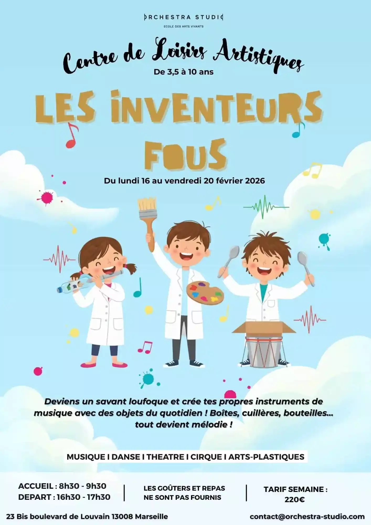 Les enfants imaginent des machines improbables, inventent des personnages excentriques et donnent vie à leurs idées à travers la danse, le théâtre, la voix et les arts plastiques.